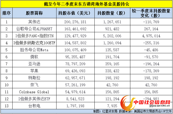 红星资本局注意到,近日,但斌旗下的海外子公司ORIENTAL HARBOR INVESTMENT FUND(下称“东方港湾海外基金”)向美国证券交易委员会提交了美股持仓数据(即13F文件)。截至二季度末,该基金共持有13只美股标的,总市值11.27亿美元,相比一季度末的8.68亿美元显著增长。