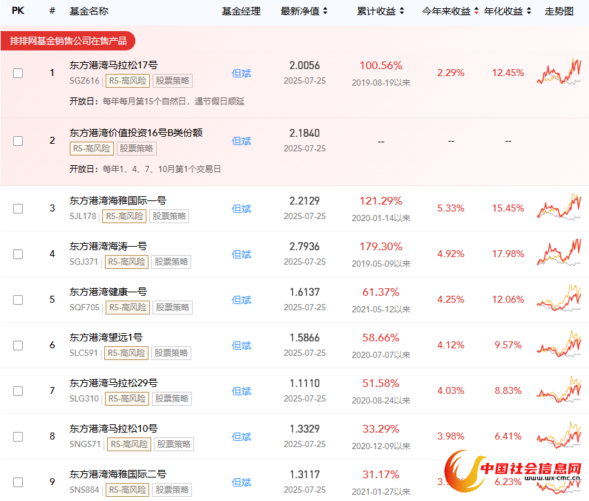 中基协信息显示,截至5月19日,由但斌掌舵的深圳东方港湾投资管理股份有限公司(下称“东方港湾”)在管基金共214只,管理规模超百亿元。2023年、2024年,东方港湾因重点布局美股,双双拿下国内年度百亿私募冠军。