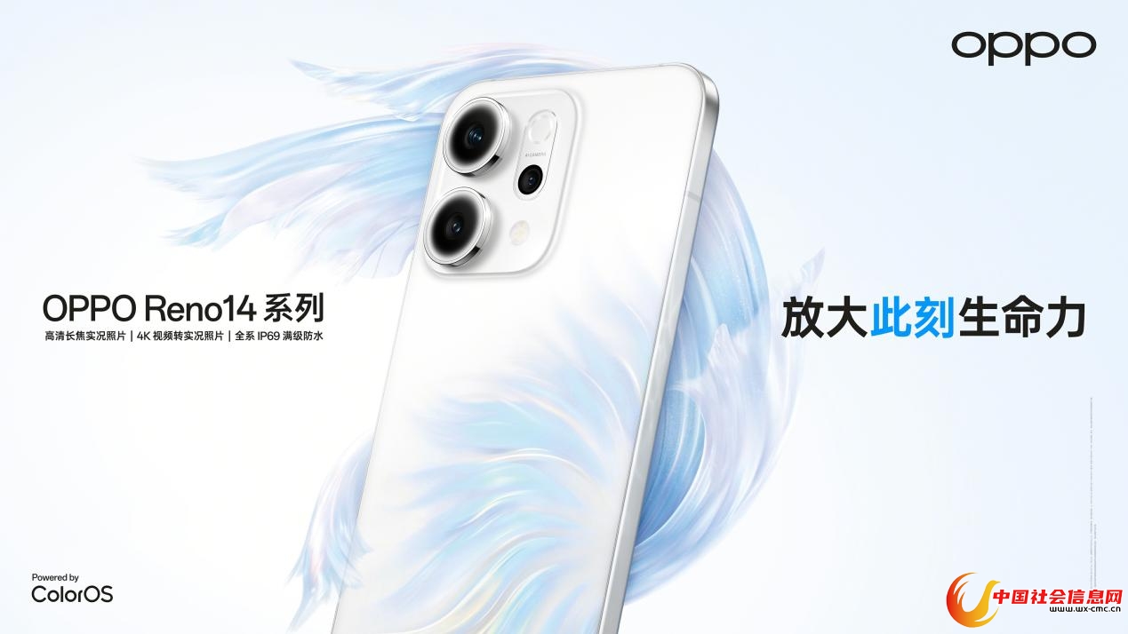 2025年5月15日,珠海——OPPO 正式发布新一代科技潮品Reno14系列,首发流光幻影工艺,打造全新潮流 "人鱼姬" 配色。Reno14系列集高清长焦实况照片、4K视频转实况照片、闪光实况照片等多种潮流玩法于一身,再次革新实况照片体验。装载天玑旗舰芯与潮汐引擎的组合,集成最高6200mAh长寿耐用大电池,Reno14系列提供高帧持久也流畅的游戏体验,8小时游戏持续打满全场;深度整合DeepSeek的ColorOS 15也登陆Reno14系列,带来全面升级的手机AI体验。