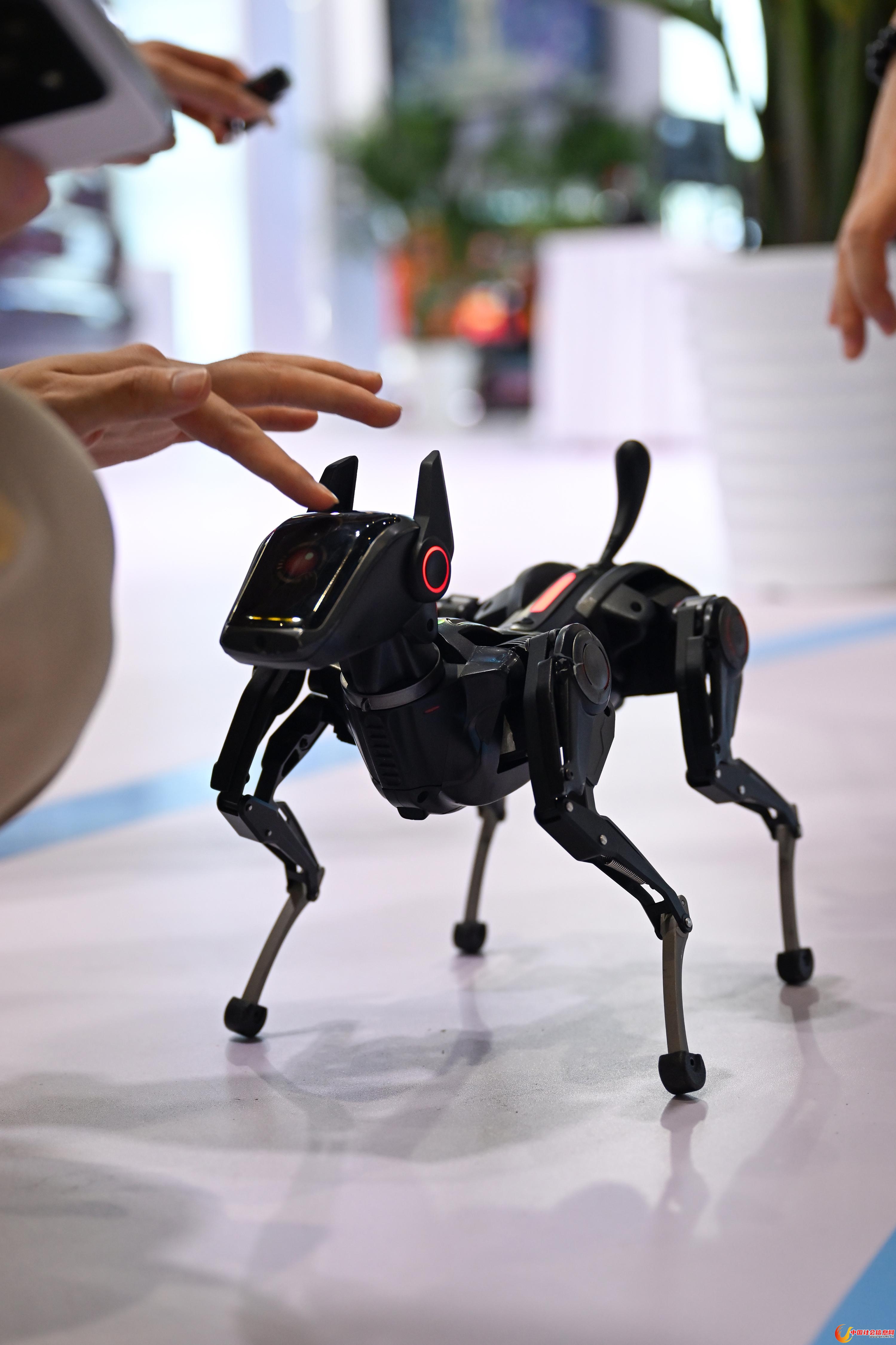 在它不远处,一只名为“哮天”的黑色小型机器狗正灵活地跳跃、转身,吸引了诸多目光。这款智能机器人不仅能与人互动,还计划登陆海外市场……