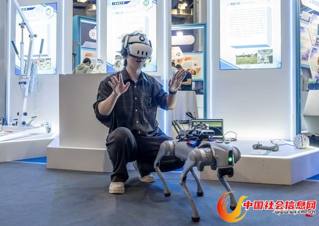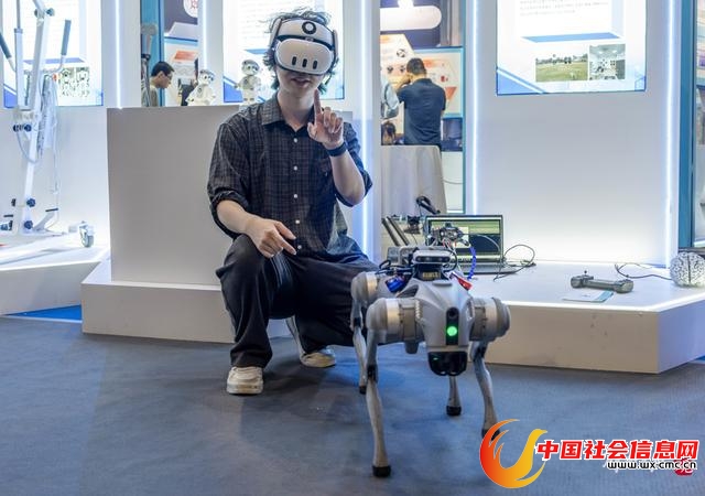 6月12日,上交会高校展区,来自华东理工大学的团队展示最新研发成果“面向四足控制的混合现实增强脑-机接口系统”。通过增强现实(AR)和混合现实(MR)技术,工作人员只要佩戴轻便的MR头显和脑电采集设备,就能在任何环境里对四足机器人进行实时控制。