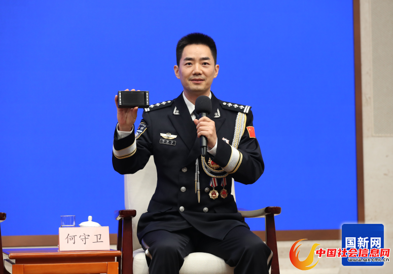 6月11日,国务院新闻办举行“新征程上的奋斗者”中外记者见面会,5位移民管理警察代表围绕“守护国门边境 服务开放发展”与中外记者见面交流。国家移民管理局信息科技司证件管理处副处长何守卫作为代表之一参与了座谈会。