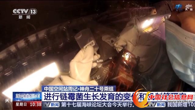 在生物技术实验柜内,“空间微重力对微生物的效应机制研究”持续推进,在空间微重力环境下,航天员进行了链霉菌的生长、发育分化、生物活性物质合成、种群传代演替的变化和机制等研究。利用科学手套箱,航天员完成了液体培养样品采集工作,并将其冷冻保存,等待下行。在空间微重力物理领域,乘组完成了燃烧柜实验插件采样盖更换,无容器柜清洁维护等工作。