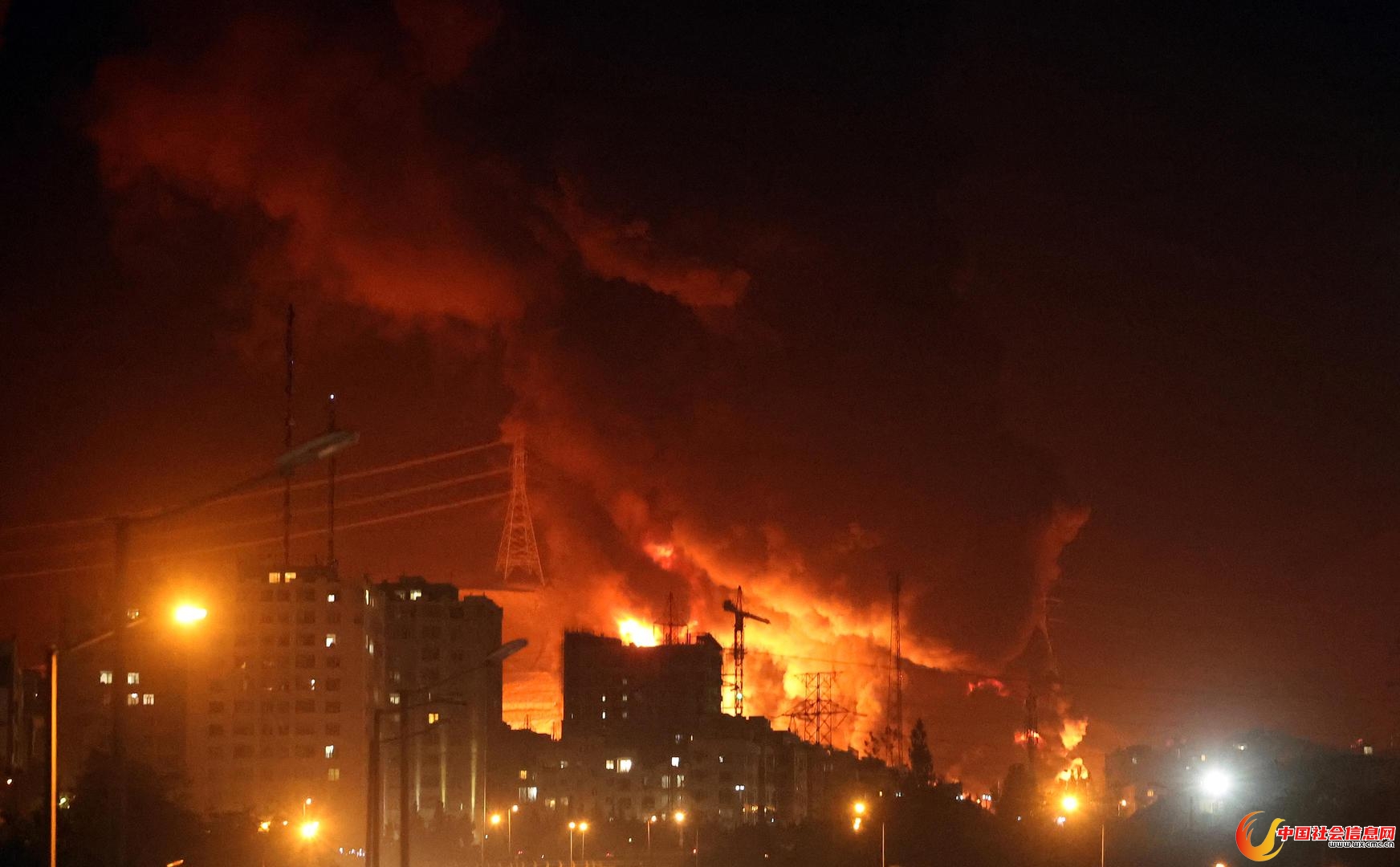 ▲当地时间6月15日,伊朗德黑兰,一个石油仓库燃起大火并冒出浓烟。图据视觉中国
