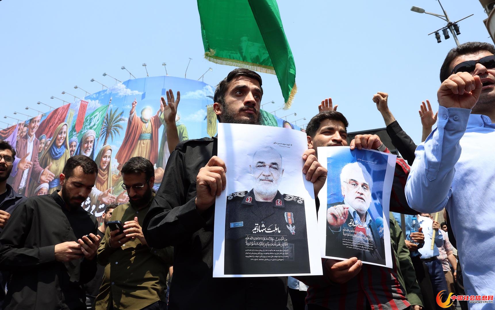 ▲当地时间6月13日,伊朗德黑兰,民众手持在以色列空袭中丧生的伊朗伊斯兰革命卫队总司令侯赛因·萨拉米和核科学家穆罕默德·马赫迪·塔赫兰奇的海报举行抗议。图据视觉中国