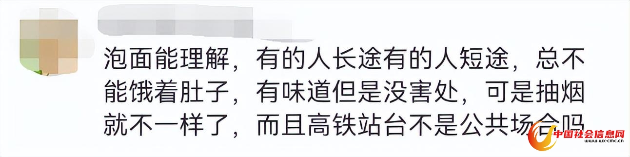 许多网友表示,相比泡面味,站台的二手烟味更让人难以忍受,建议在站台等候列车处也禁止吸烟。