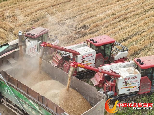 各地还充分发挥农机专业合作社、农机服务公司力量,提高社会化服务能力,争分夺秒抢收入库。