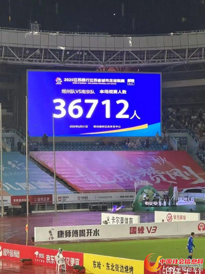 据“常州发布”6月21日消息,当天江苏省城市足球联赛第五轮揭幕战在常州奥体中心举行,常州队主场对阵南京队,该场比赛单场观众突破36712人。 红星新闻记者注意到,虽然常州队最后以0:4输掉了比赛,继续排名垫底,但该场比赛为“苏超”开始以来单场观众最多的一次,在不久前结束的2025中超联赛第13轮的8场比赛中,也仅有两场比赛的观赛人数超过“苏超”常州队的本场比赛。