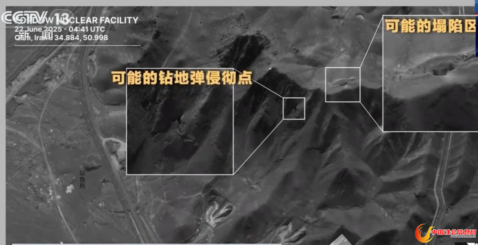 ▲伊朗福尔道核设施遇袭后的卫星图像央视新闻截图