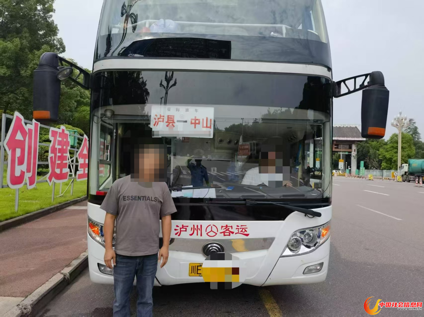 6月24日上午9时许,四川高速公安三分局十一大队民警在G76夏蓉高速公路泸县收费站入口处开展日常检查时,一辆从四川泸州发往广东中山的大型客车准备上高速,缓缓驶入检查点接受检查。