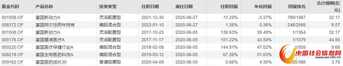 除此之外,他管理的富国精准医疗、富国医疗保健行业,直到他2020年6月离任,在任期内都实现了翻倍的收益,任期回报分别达到151.22%、144.81%,回报排名同样位居同类产品第一。