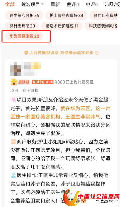 红星资本局还通过大众点评注意到,该诊所为医美诊所,产品包括黄金微针、冰点脱毛以及水光注射等,人均消费为2218元。多位消费者在评论时提到,该诊所在华为园区附近。