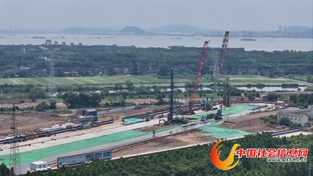 盐宜高铁长江隧道长距离穿越长江地下高水压、基岩凸起等复杂地层,面临地质环境复杂、穿越敏感建构筑物多、水下土岩复合地层掘进风险高、盾构机选型难度大、隧道结构设计新等特点。目前,大临工程建设、土建施工、盾构机选型设计等工作稳步推进。