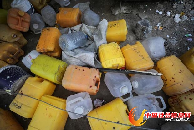 ▲在供水点取水的巴勒斯坦人遭到以色列袭击,现场血迹斑斑