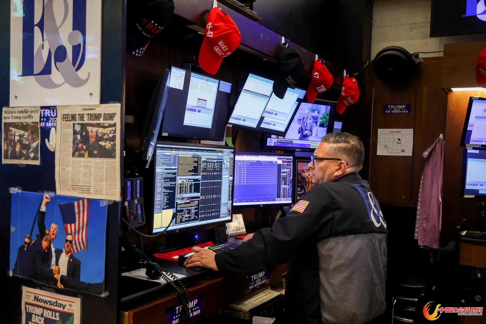 当地时间7月14日,美国纽约,一名交易员在纽约证券交易所(NYSE)交易大厅工作(图据视觉中国)