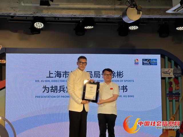 胡兵(左)被正式授予2025世界赛艇锦标赛推广大使。