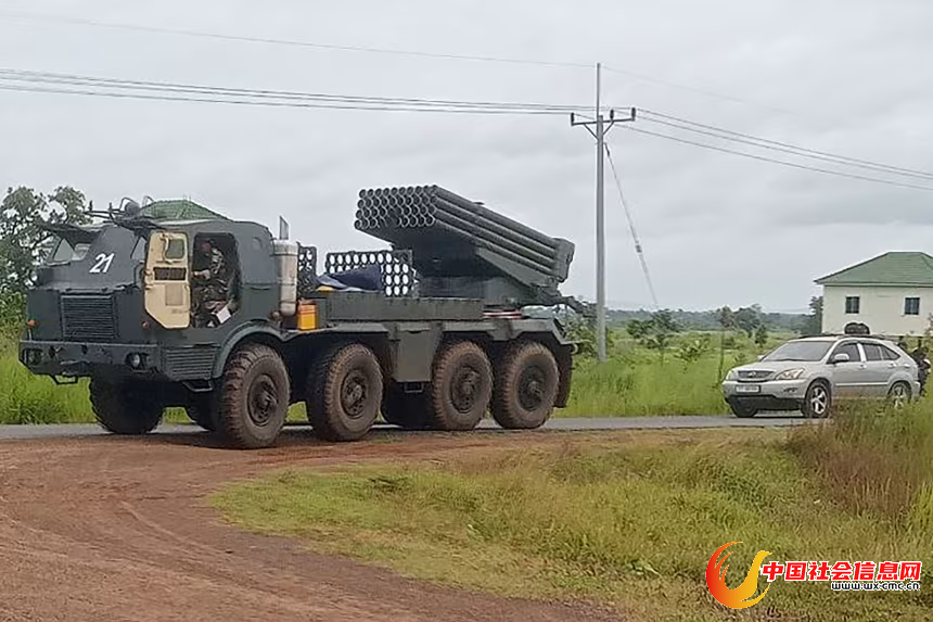 7月24日,柬埔寨BM-21多管火箭炮系统从柬泰边境返回