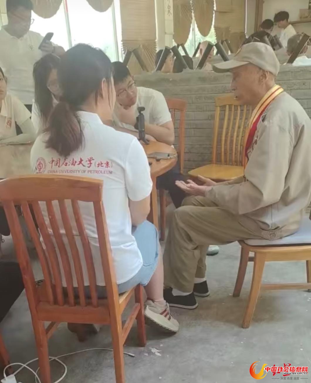▲廖沛林(右)向大家讲述那段历史