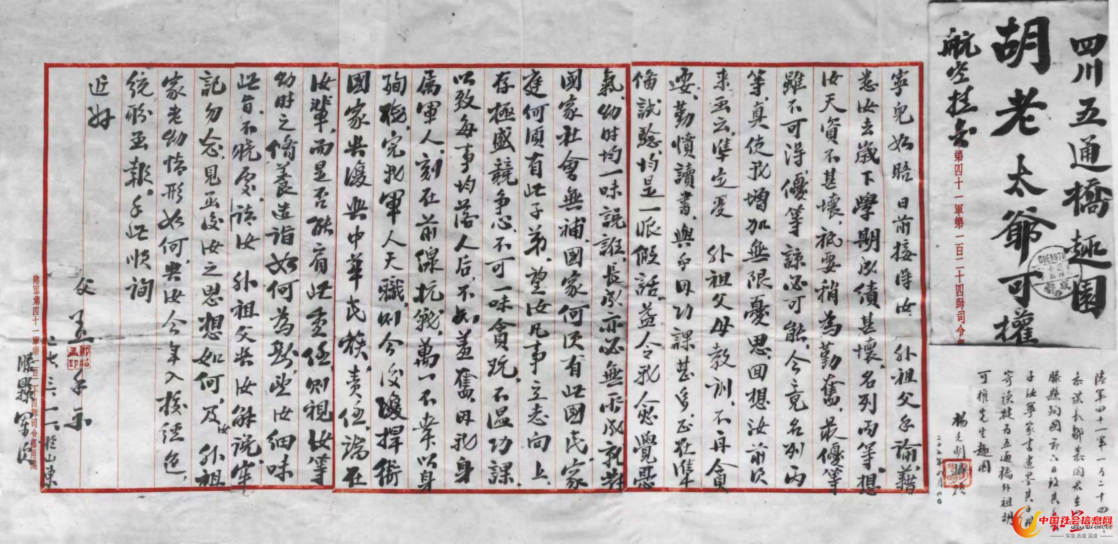 一封封抗战家书背后,凝聚着一个时代的集体记忆。在纪念中国人民抗日战争暨世界反法西斯战争胜利80周年之际,红星新闻记者专访了这位川军将领的后代。那封家书的纸张早已微微卷起边角,但它始终悬挂在后辈书房里最显眼的位置。