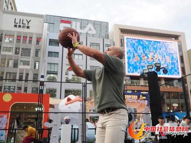 同一时间,广场另一侧的青年潮流数娱互动活动吸引了不少年轻群体。两项活动同处一地、相互借势,带来了更高的自然到访量:不少路过的游客先被灯光与音乐吸引,随后被球场的节奏“拉住脚步”。一些年轻观众在数码互动区体验之后,又回到三分点位领取号码牌;也有人在完成篮球挑战后,转身排队参与另一侧的互动项目。城市地标在“体育+青年文化”的双重场景中被点亮,公共空间的“复合功能”得以充分释放。