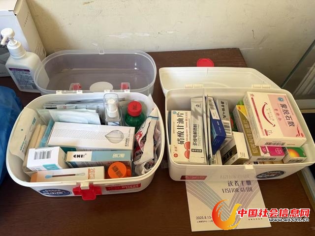 医疗与物流保障也悄然到位。西一馆入口处的医疗点配备了专业急救人员,瑞金医院的志愿者小组“蓝小医”自2021年起就与上海书展合作,为现场读者建立医疗保障,医生每隔2小时会巡馆一圈。值班的张医生告诉记者:“早晨有个低血糖的女孩子,她昨晚拉了肚子,早上又没吃早餐,几乎晕倒在书展,但给她吃一颗糖就好啦。”医疗点的药品完备,从硝酸甘油片、麝香保心丸、达喜咀嚼片到创可贴等应有尽有。记者采访时,进来了一个手指被钉子划破的现场工作人员,伤口虽不大,医生也进行了及时安全的处理。