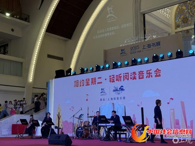 18时30分,上海展览中心中央大厅舞台上,一场“相约星期二·轻听阅读音乐会”传出乐音。“世界赠予我拥有,也赠予我回敬……赠我一首诗,又悄悄读得很安静”,当台上歌者将话筒伸向读者席,一位小读者的稚嫩童音让人感动。