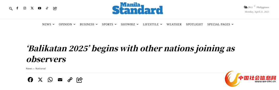 当然,菲律宾敢于不断挑衅的原因,还是美国的不断怂恿。3月28日,美国国防部长赫格塞思访问马尼拉时表示,华盛顿正在向菲律宾部署力量,以应对中国,并强调美国将继续致力于菲律宾的安全,他还向马尼拉保证,华盛顿将继续提供5亿美元的对外军事融资和其他安全援助,以支持菲律宾的军事现代化。4月2日,美国又批准向菲律宾出售价值55.8亿美元的F-16V战斗机。甚至菲律宾还表示有意采购“堤丰”中程导弹系统。