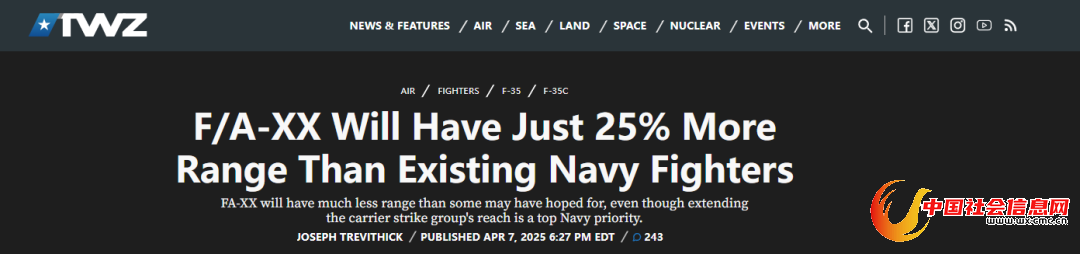 这个航程数字让外界非常吃惊。报道称,美国海军面临着“一个充满潜在对手的威胁生态系统”,尤其是像中国这样的同量级对手。“中国可以在空中、海上和地面上与美军和其盟友交战,而且中国军队的打击距离越来越远”。因此外界此前普遍认为,美国海军需要增加航母舰载机部队的作战半径,以减少航母打击群遭到对手攻击的威胁。“许多人预计F/A-XX 的作战半径应该远远超过现役舰载战斗机,这将有助于进一步扩大航母打击群的防御范围,以应对未来的威胁。”