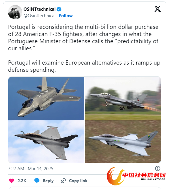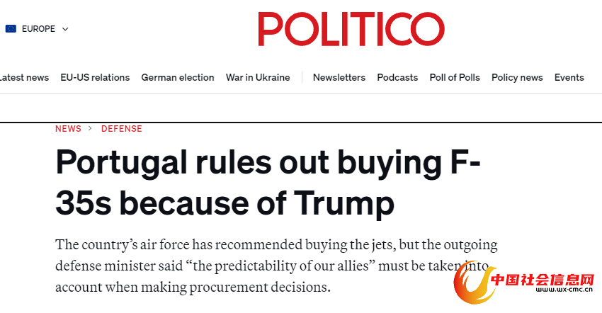 “政治”网站也不无担心地提到,葡萄牙对F-35说“不”之后,会不会有更多美国盟友跟进备受关注。例如荷兰国防大臣几天前表示,荷兰不会取消现有F-35采购合同——但该国尚未正式签署协议。