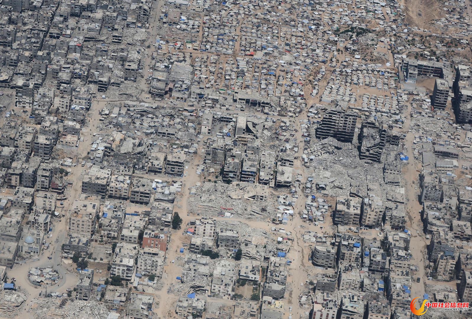8月6日,航拍照片显示加沙城一片废墟 图据视觉中国