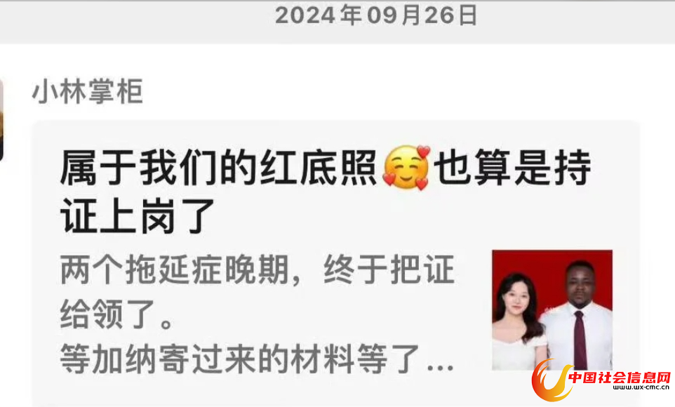 然而要和黑人男友办理结婚需要男友提供很多材料,而这些个人材料都需要等男友从加纳老家寄过来,于是就是漫长的等待,朋友们是甚至都以为他俩的等待只是一套说辞,压根就没想过结婚了。