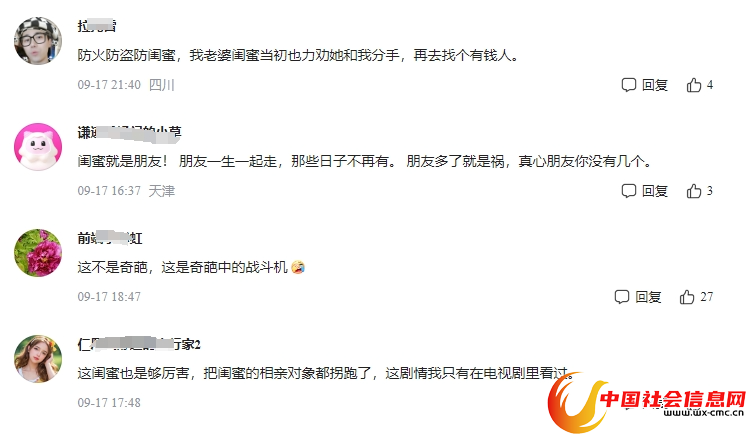然而她的行为却让很多人不能接受,不少人表示“男未婚女未嫁的话,俩人可以在一起,但是你真的不应该窜倒着闺蜜分手,自己趁虚而入,这样太不道德了。”“防火防盗防闺蜜这话一点错都没有。”“真是奇葩!”