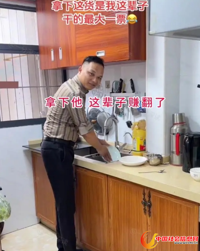 视频中的男子正在厨房做饭,虽然长相不帅,年龄也已经33岁,但是视频拍摄者,也就是男子的妻子却从始至终语气中都透露着幸福的炫耀。
