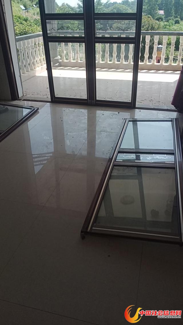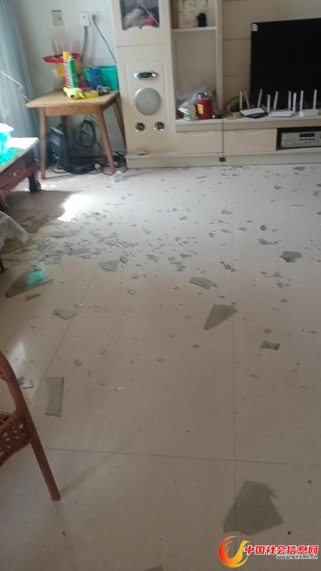 杨有才家中遭遇的爆炸冲击波的影响,门窗均被破坏。受访者供图
