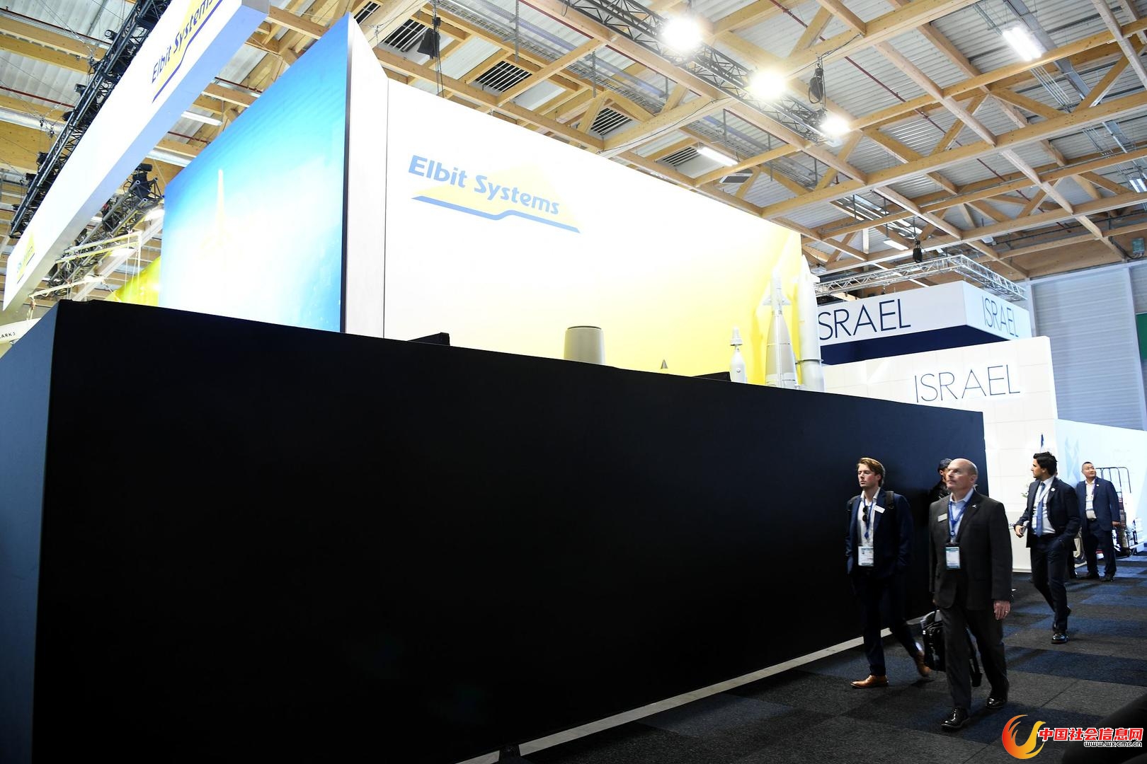 被黑色幕布包围的以色列防务企业展台 图据视觉中国
