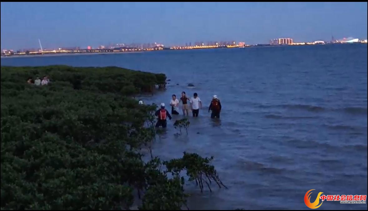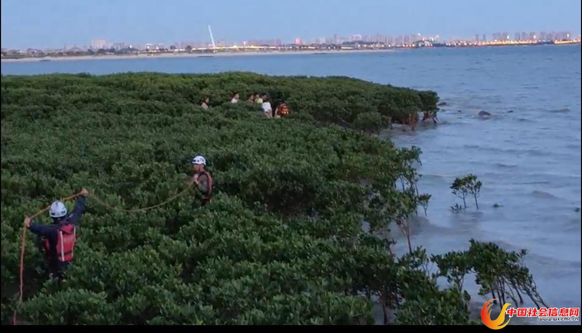 6月21日晚,福建厦门同安区浪漫海岸线景区,7大1小共计8人被困海边红树林,深陷淤泥无法自行脱困上岸。警方接到求助后,厦门曙光救援队对被困人员展开紧急营救,最终8人成功脱困。