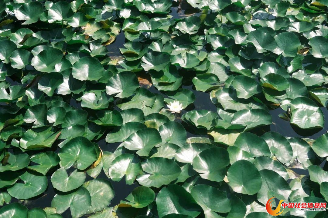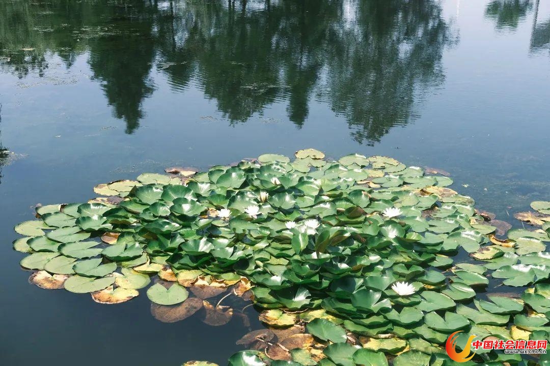 与晨兴公园的热闹相比,如心公园则展现出另一番静谧悠然的意境。宽阔的湖面上,睡莲悄然绽放,它们温婉地贴着水面,或洁白如雪,或鹅黄明丽,如同散落湖面的星光。