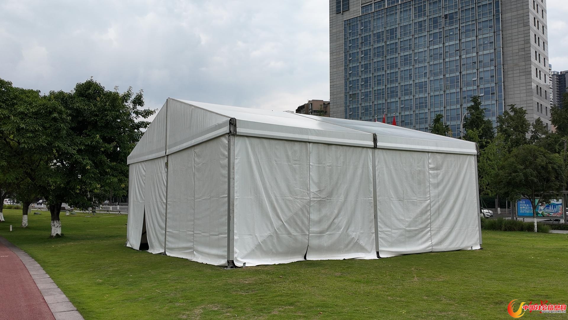 6月27日,红星新闻记者来到桂溪生态公园,发现原本开阔、碧绿的公园内,一座座醒目的白色建筑分布在公园边上。“我们目前已经建成的临建板房,未来将作为新闻发布厅、媒体工作间和工作人员餐厅等功能使用。”据负责场地改造的成都高新区社事投资发展有限公司场馆建设组长王兆轩介绍,临建板房共有4栋,总共700平方米;除了临建板房的搭建外,整个公园还将建12个棚房,用于运动员热身、工作人员休息以及物资收纳等功能。