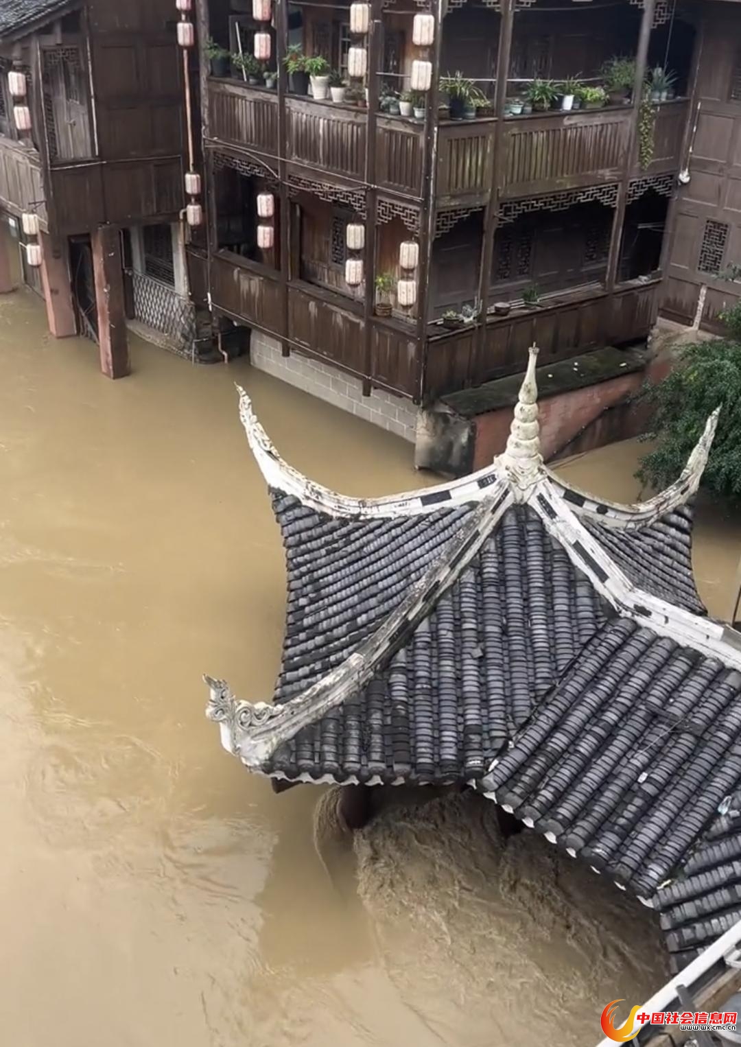▲凯里下司古镇河道水位猛涨