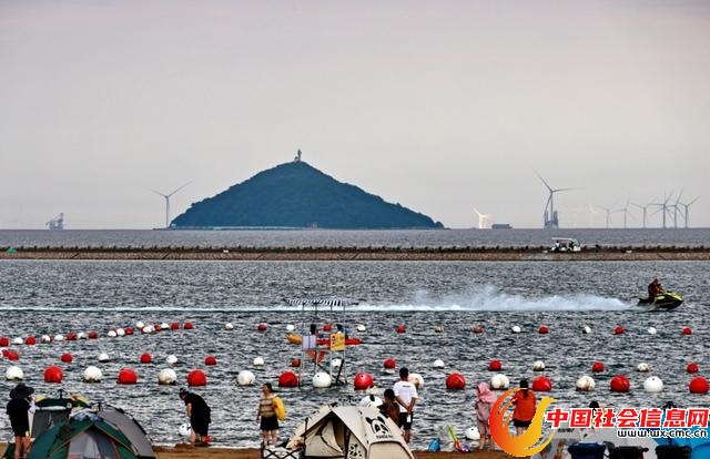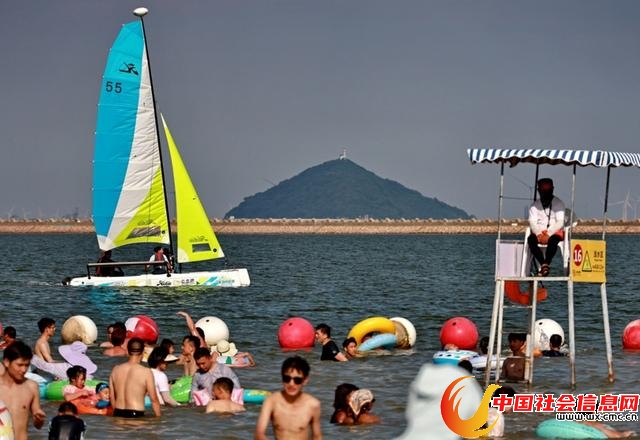 在正式开放的泳区,人们或畅游清澈海水或支起帐篷休闲。水上卡丁车、帆船、快艇、水上自行车和皮划艇等多种娱乐项目也备受欢迎。据统计,双休日游客人数逾万。
