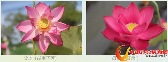 “越南子莲”源自越南,具有热带基因,自然花期长,花量大,结实率高,同时株型高大、抗性强;“红帛”是亚美杂交莲,株型秀雅、花色鲜艳。
