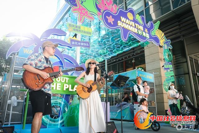 当天,商场内的“wave好海森”夏日游乐场主题活动如火如荼,小朋友们在“海岸潮集”市集体验“清凉凿冰”,在巨型冰块装置中寻宝“时令鲜果”,感受甜蜜冰爽。