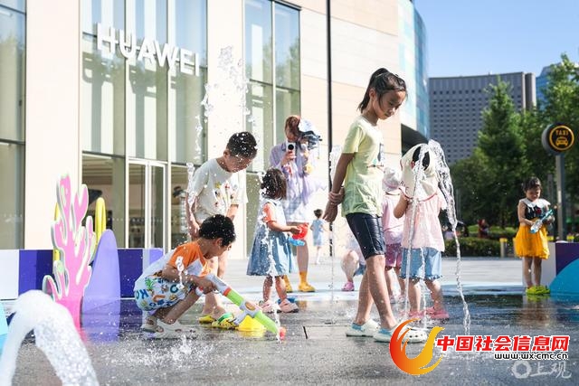 2025年7月6日,上海天气炎热,虹桥南丰城为小朋友们带来了一片清凉天地。