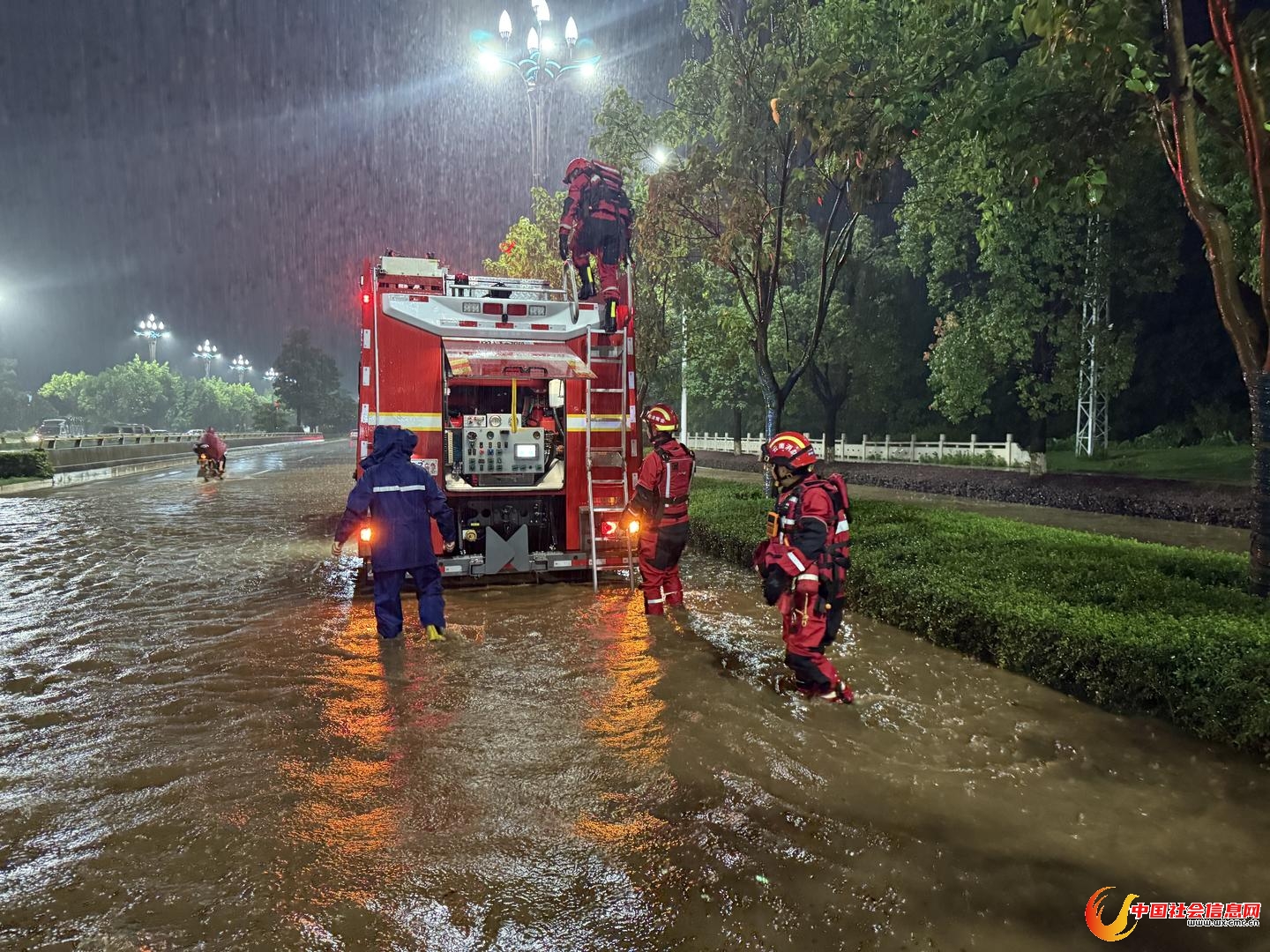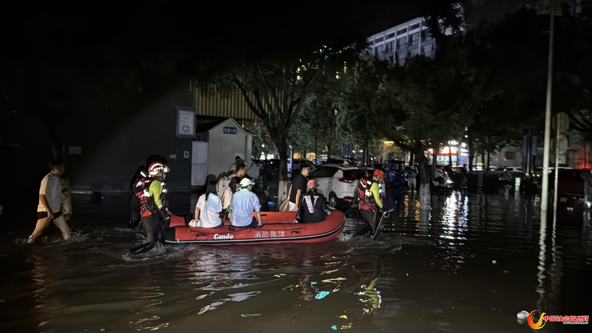消防救援人员冒着暴雨抵达现场后,迅速展开救援。针对积水区域分散、部分群众行动不便的情况,救援人员采取“单个背人”与“皮划艇转运”相结合的方式,在积水中开辟“生命通道”,争分夺秒疏散被困群众。经过紧张救援,紧急救援转移受困群众200余人至安全地带。
