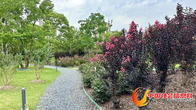 值得一提的是,每个品种上都挂有介绍铭牌和二维码,不少品种在申城街头绿地非常罕见,在这里却可大饱眼福,一园看遍。此外,紫薇园与蝶语园用绿篱分隔,这些绿篱全部由紫薇枝条编成。待到8月,绿篱上将开出娇艳的紫薇花,届时又将是一道美丽的风景线。