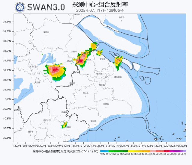 午后大气中攒足了不稳定能量,对流云团开始迅速发展,本市高温、雷电、暴雨、大风预警陆续发布。在第一波降雨中,中心城区几乎与雨无缘……降水主要出现在长兴岛、宝山、嘉定、松江、金山、闵行、浦东北部等地,其中浦东北部的降水更加明显和持续,局地降水强度也不小,00时至16时浦东北蔡镇累积雨量63.7毫米为最大。