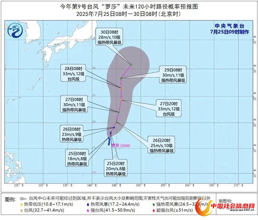 今年第9号台风“罗莎”(热带风暴级)的中心今天(25日)早晨8时距离关岛塞班西北方向约325公里,就是北纬17.1度、东经143.4度, 中心附近最大风力有8级(18米/秒),中心最低气压为998百帕,七级风圈半径160-260公里。
