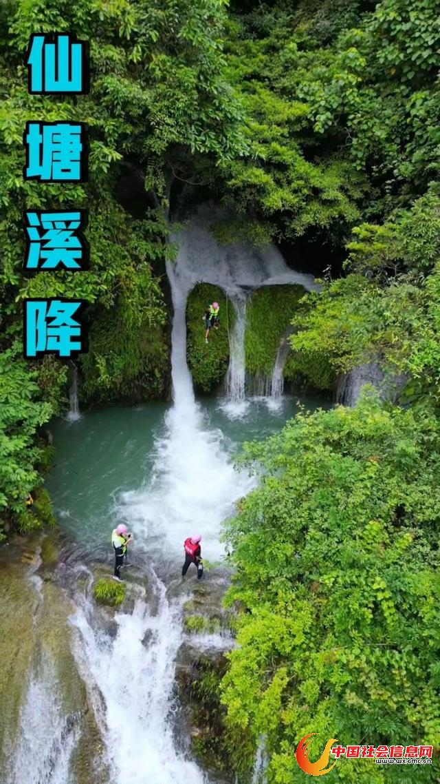 近日,记者在南丹县丹炉山仙塘溪降现场看到,不少游客们身着专业装备,穿梭于丛林之间,他们时而从高高的瀑布上纵身跳下,时而在清澈见底的溪流中畅游,欢声笑语响彻山谷。
