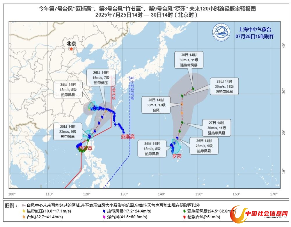 目前海上仍然是“范斯高”、“竹节草”、“罗莎”三台共舞的格局。“竹节草”、“罗莎”对本市无直接影响。