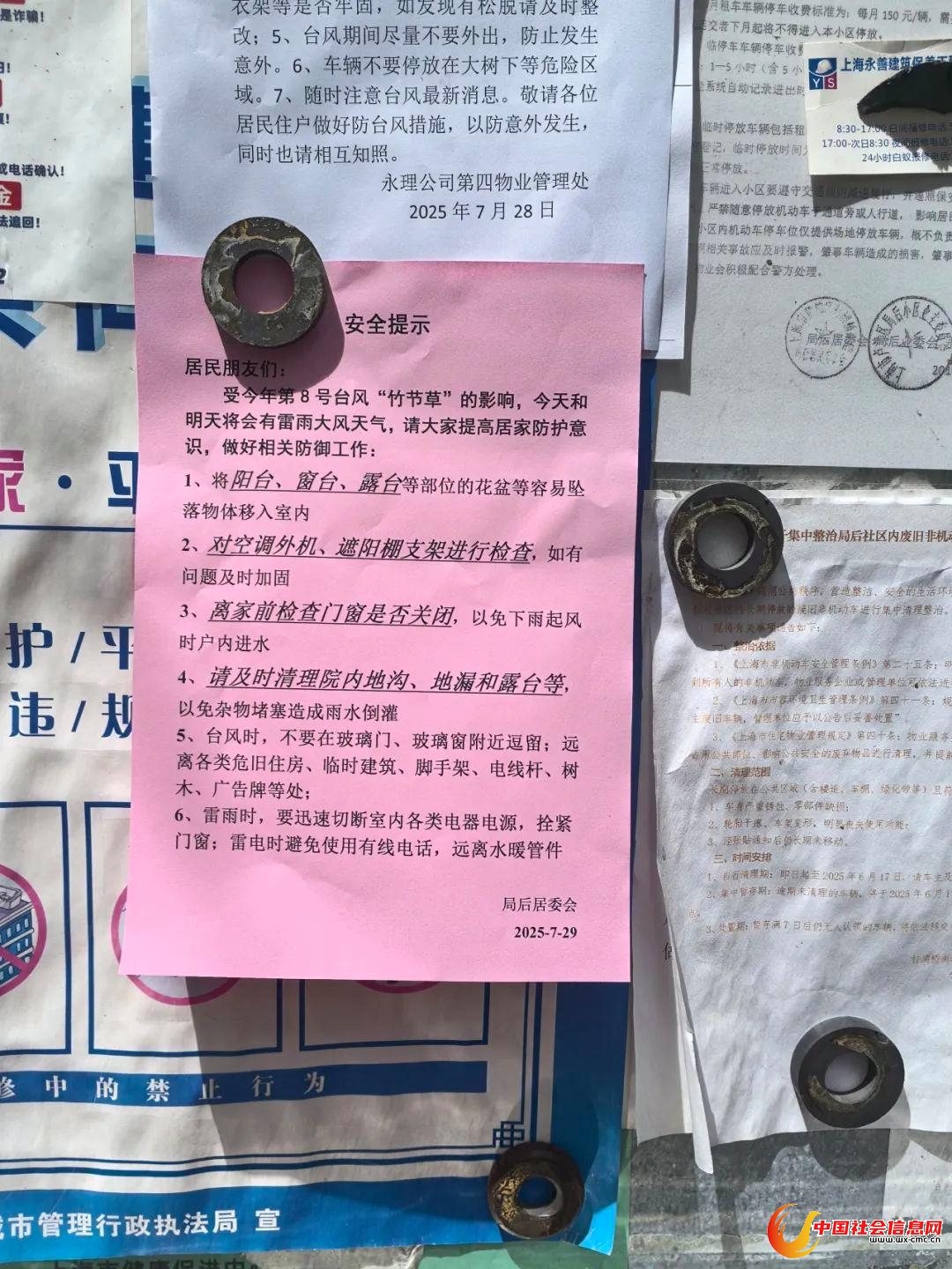 半淞园路街道街道开展防台防汛检查,要求相关责任方做好防御准备,抢抓防台“窗口期”,梳理物资储备情况,消除高坠隐患,停止工地作业等,加强居民区防台防汛宣传和应急准备工作,确保值班值守力量进岗到位。
